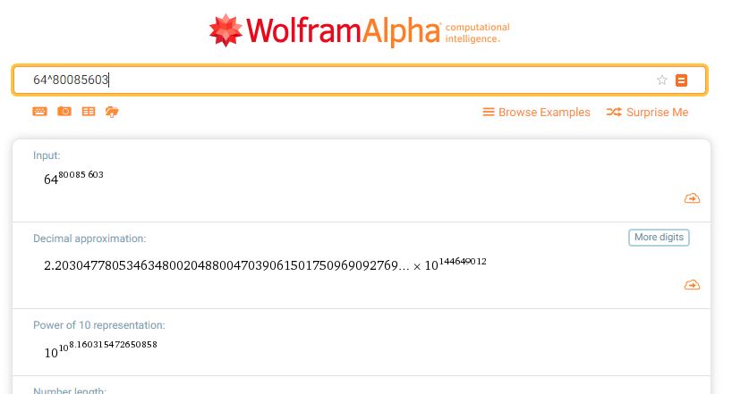 The number of combinations is 64 to the 800856603th power. Quite a large number.